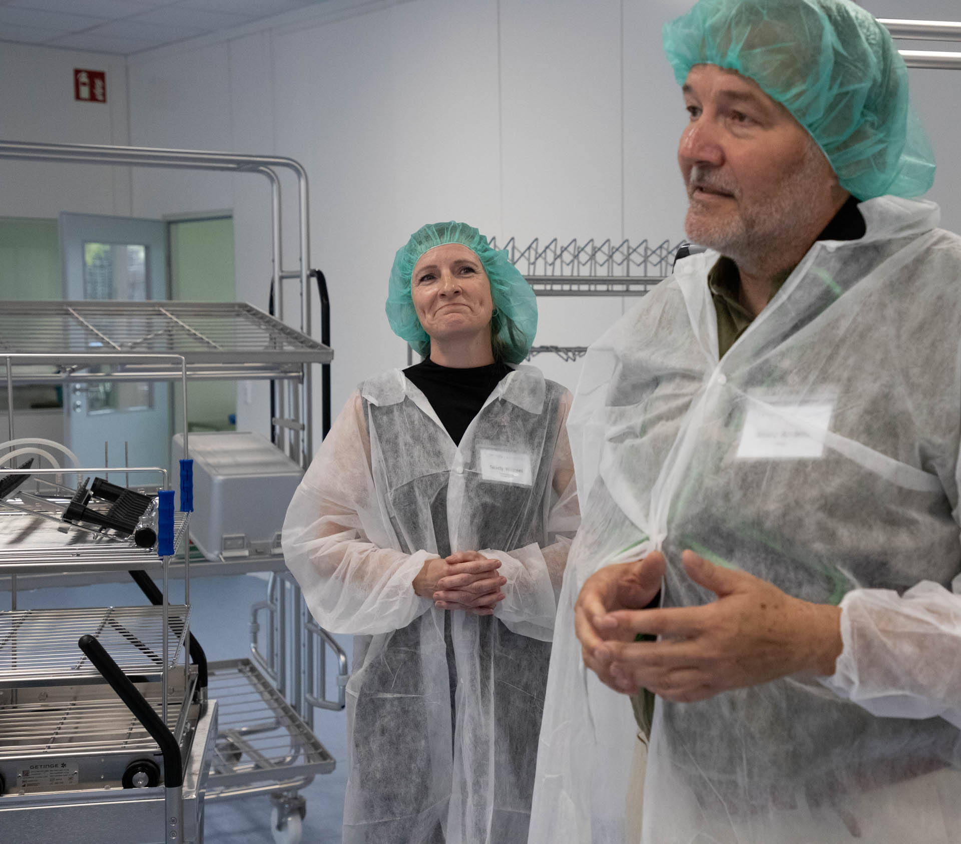 „Wir sind hier am 1. Juli mit einer klaren Vision gestartet“, so Geschäftsführerin Antonella Werner. „Mit unseren hochmodernen, effizienten Lösungen für Praxen und Kliniken stoßen wir in eine Marktlücke im Dreiländereck.“ Vergleichbare Unternehmen gäbe es bundesweit bisher nur wenige, so m-sas-Gesellschafter Thomas Werner. Dabei sei klar: „Ohne AEMP keine OP!“ Wobei „AEMP“ für die „Aufbereitungseinheit für Medizinprodukte“ als Abkürzung steht. Denn genau das ist das Kerngeschäft der m-sas GmbH: die Firma setzt neue Maßstäbe in der Aufbereitung von Sterilgut. Dafür ist der Betrieb DIN-verifiziert und setzt bei der Ausstattung ganz auf die führende Expertise des GETINGE-Medizintechnikkonzerns aus Schweden, dessen Geräte für eine reproduzierbare, validierte Qualität bei der Reinigung von OP-Besteck und anderen Medizingeräten steht. Die Verifizierung bedeutet, dass jedes Gerät, das in Riegel bei der m-sas GmbH gereinigt wird, für den Zeitraum von 30 Jahren nachverfolgbar bleibt, denn so lange dauert die Dokumentationspflicht jedes Arbeitsganges, der in Riegel durchgeführt wird, so Betriebsleiter Marius Ponciu: „Es geht hier schließlich um Patientenleben! Und da müssen wir Qualität bringen!“ Von der manuellen Aufbereitung der angelieferten Geräte bis zur Dampfsterilisation am Ende des Arbeitsganges ist jeder Arbeitsschritt genau vorgeschrieben, so Betriebsleiterin Sindy Wenzel.
