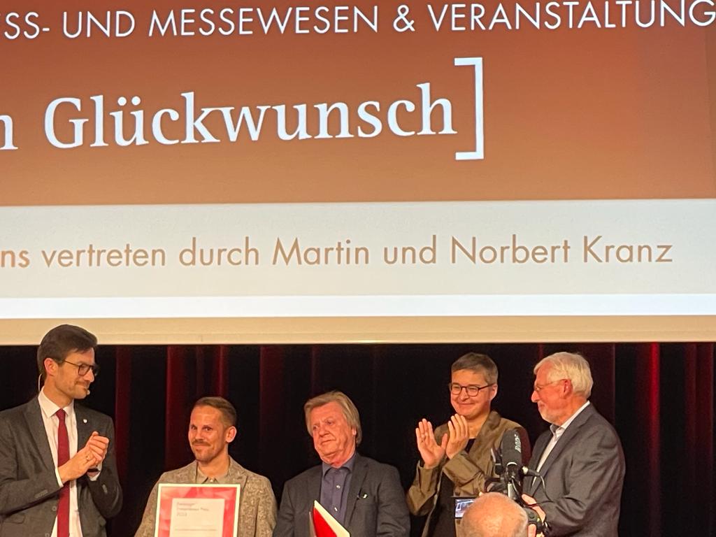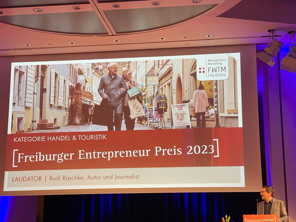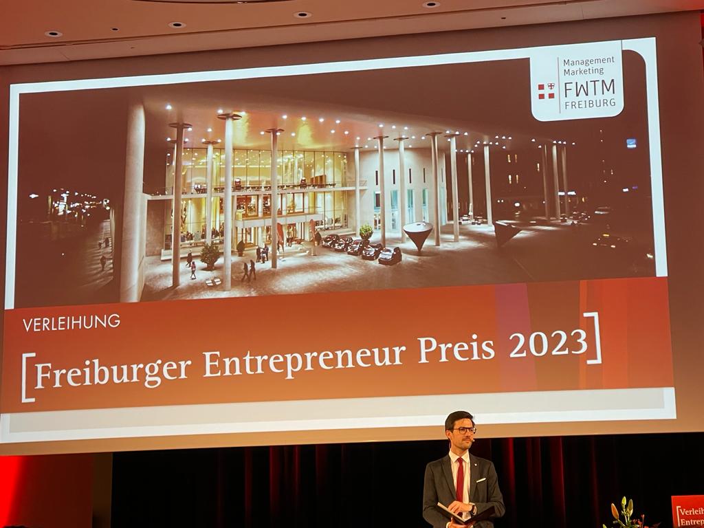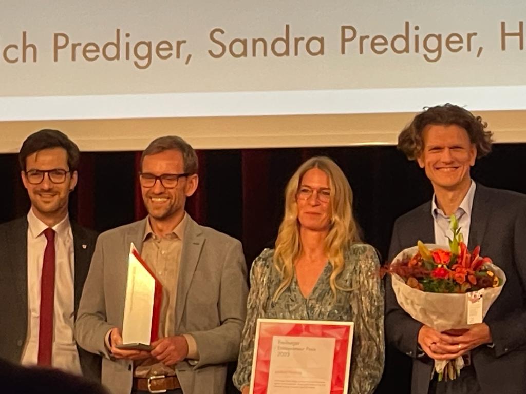 Die Freiburg Wirtschaft Touristik und Messe (FWTM) hat am Dienstagabend im Runden Saal des Konzerthauses zum sechsten Mal den Freiburger Entrepreneur-Preis verliehen. Die Preisträger im Jahr 2023 sind das Dienstrad-Leasing-Unternehmen Jobrad, die Kranz Live Eventsolution als Veranstaltungs-Dienstleister und das Einzelhandelsgeschäft Stiegeler Schlafkomfort. Überreicht wurden die Auszeichnungen durch Oberbürgermeister Martin Horn und FWTM-Geschäftsführerin Hanna Böhme. "Der Standort Freiburg hat viele herausragende Entrepreneure, die sich nicht nur mit wirtschaftlichem Erfolg, sondern auch durch gesellschaftliches Engagement hervorheben", meinte Oberbürgermeister Horn in seiner Rede. Verliehen wird der Entrepreneur-Preis in jedem Jahr in den drei Kategorien Wirtschaft, Handel und Tourismus sowie Kongress- und Messewesen/ Veranstaltungen.